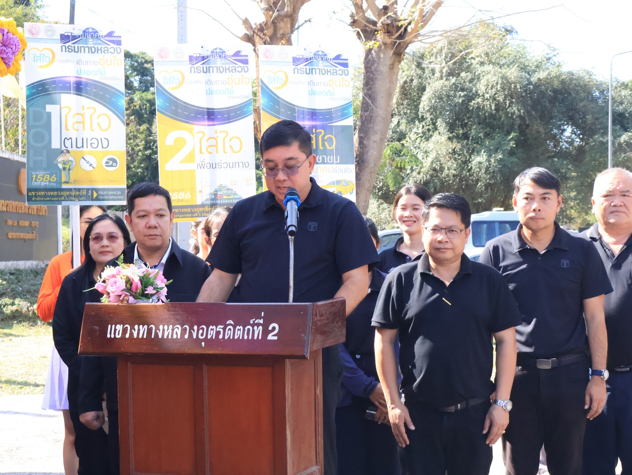 นายสรพงษ์ มานะสุขอนันต์ รองผู้ว่าราชการจังหวัดอุตรดิตถ์ พร้อม นายบัณฑิต รักษาดี รองผู้อำนวยการสำนักงานทางหลวงที่ 5 (พิษณุโลก) และคณะตรวจเยี่ยมฯ นายชาโณ พยงค์ศรี ผู้อำนวยการแขวงทางหลวงอุตรดิตถ์ที่ 2 คณะผู้บริหาร หัวหน้าหมวดทางหลวงในสังกัด และเจ้าหน้าที่แขวงทางหลวงอุตรดิตถ์ที่ 2