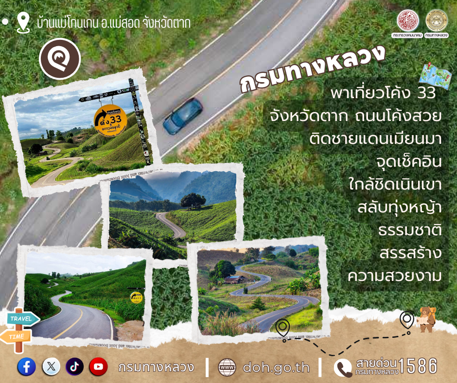 กรมทางหลวง (ทล.) ขอเชิญชวนประชาชนสัมผัสกับเส้นทางสายธรรมชาติ “ถนนโค้ง 33” บ้านแม่โกนเกน